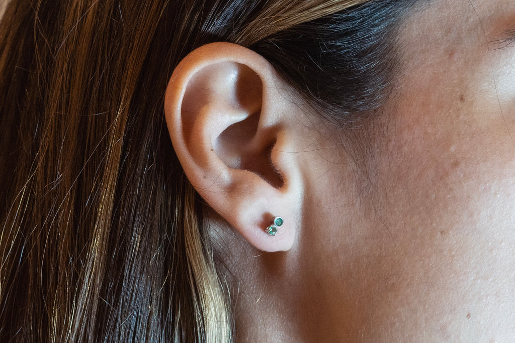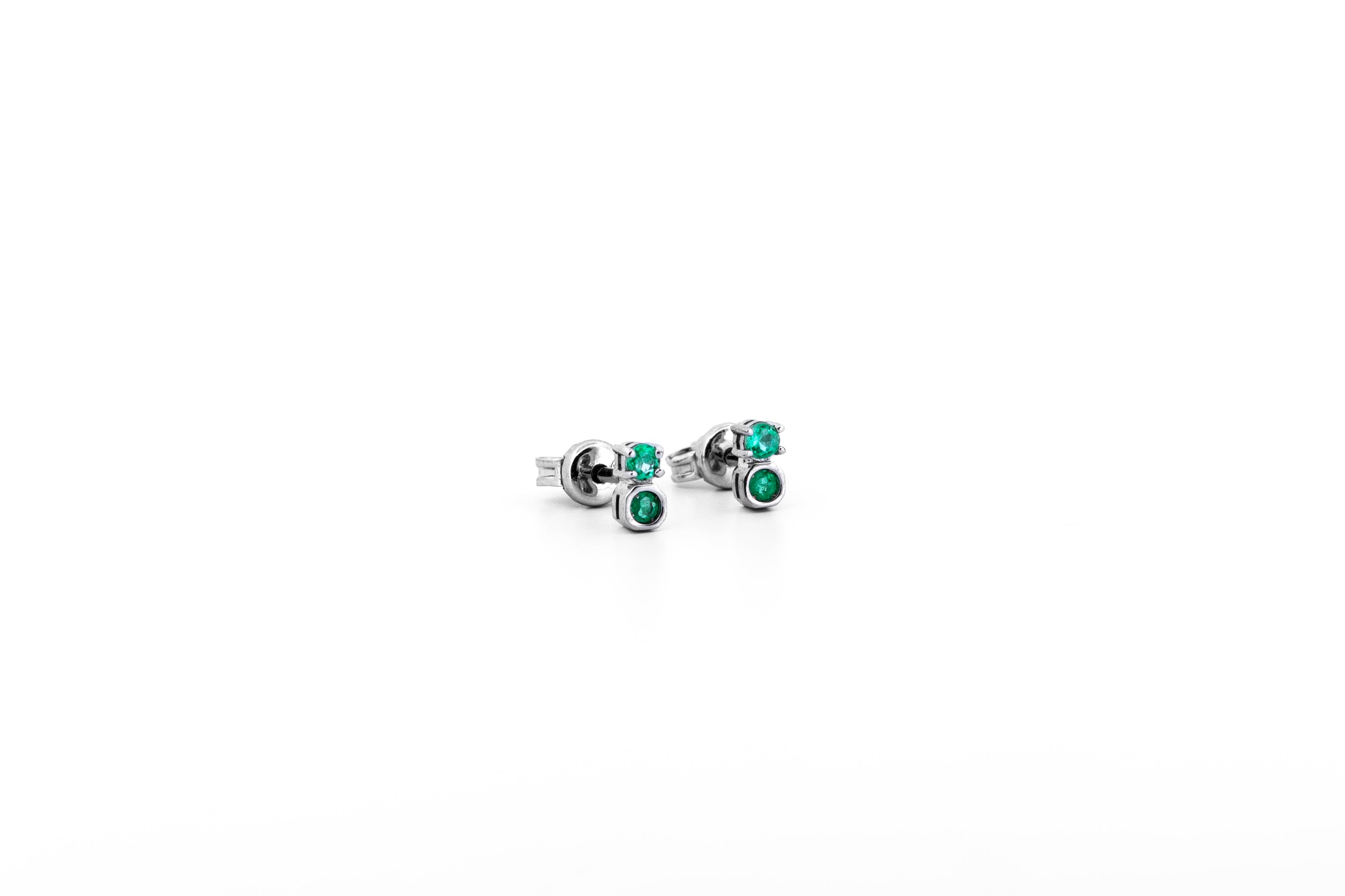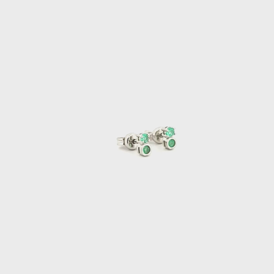 Aretes en plata rodinada ley 925 con esmeralda colombiana. Dimensiones aprox: 6x3mm