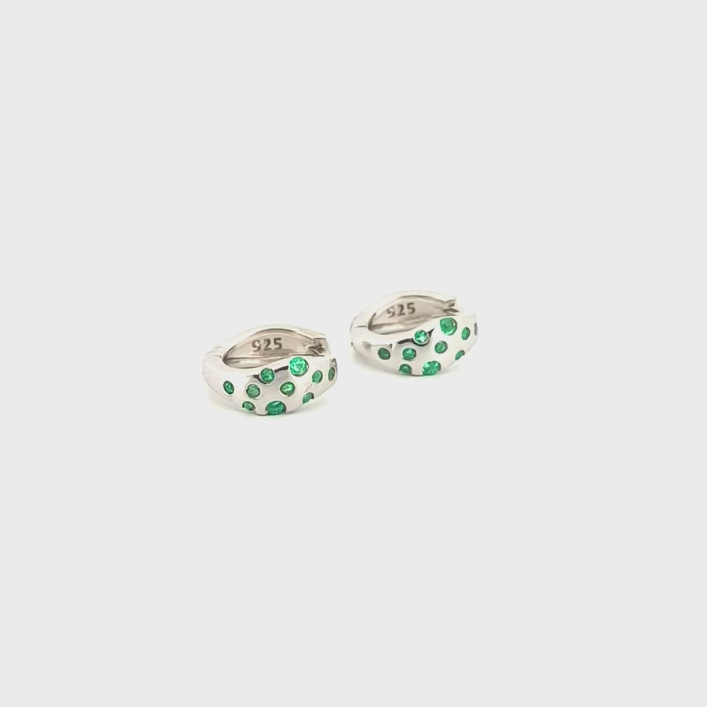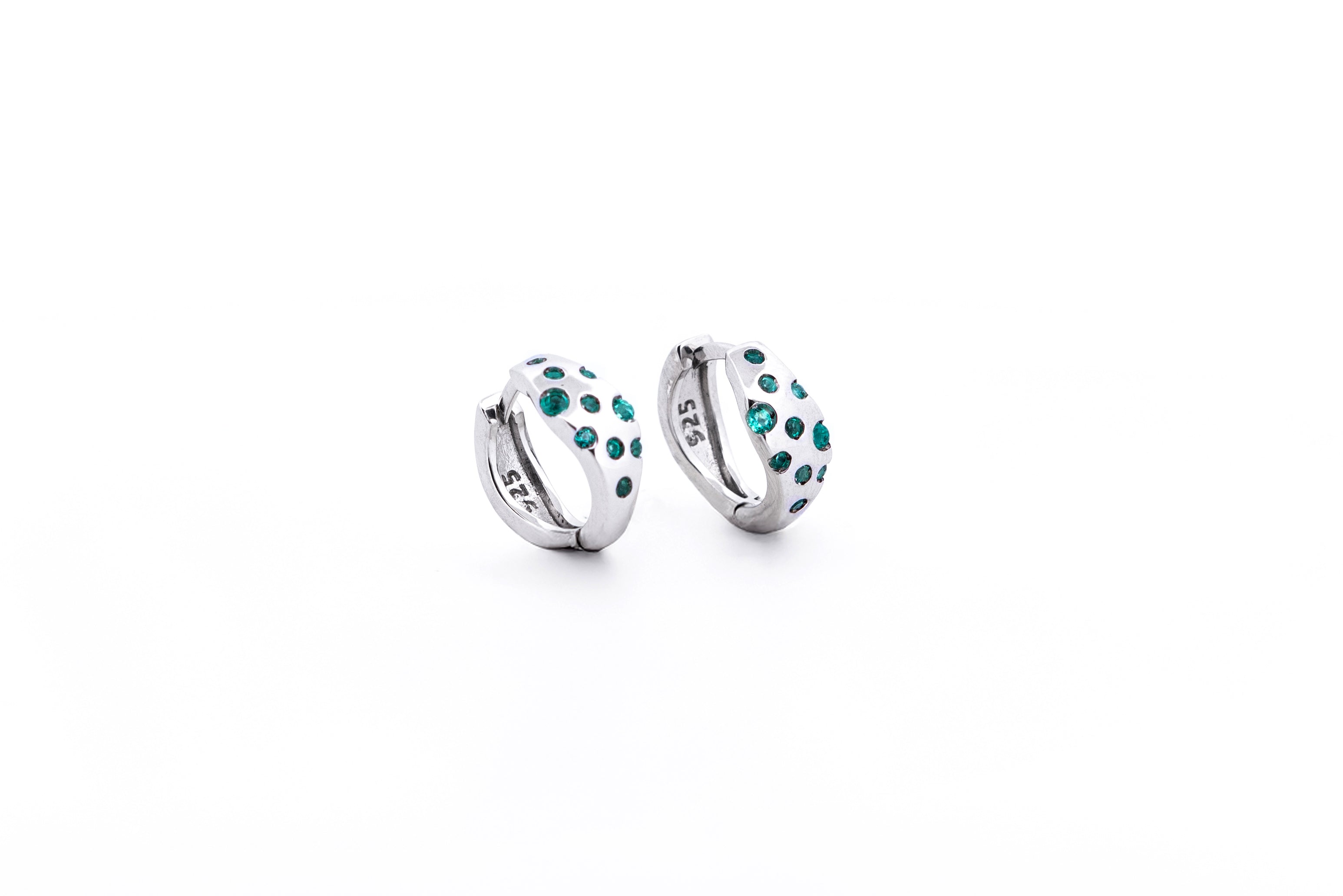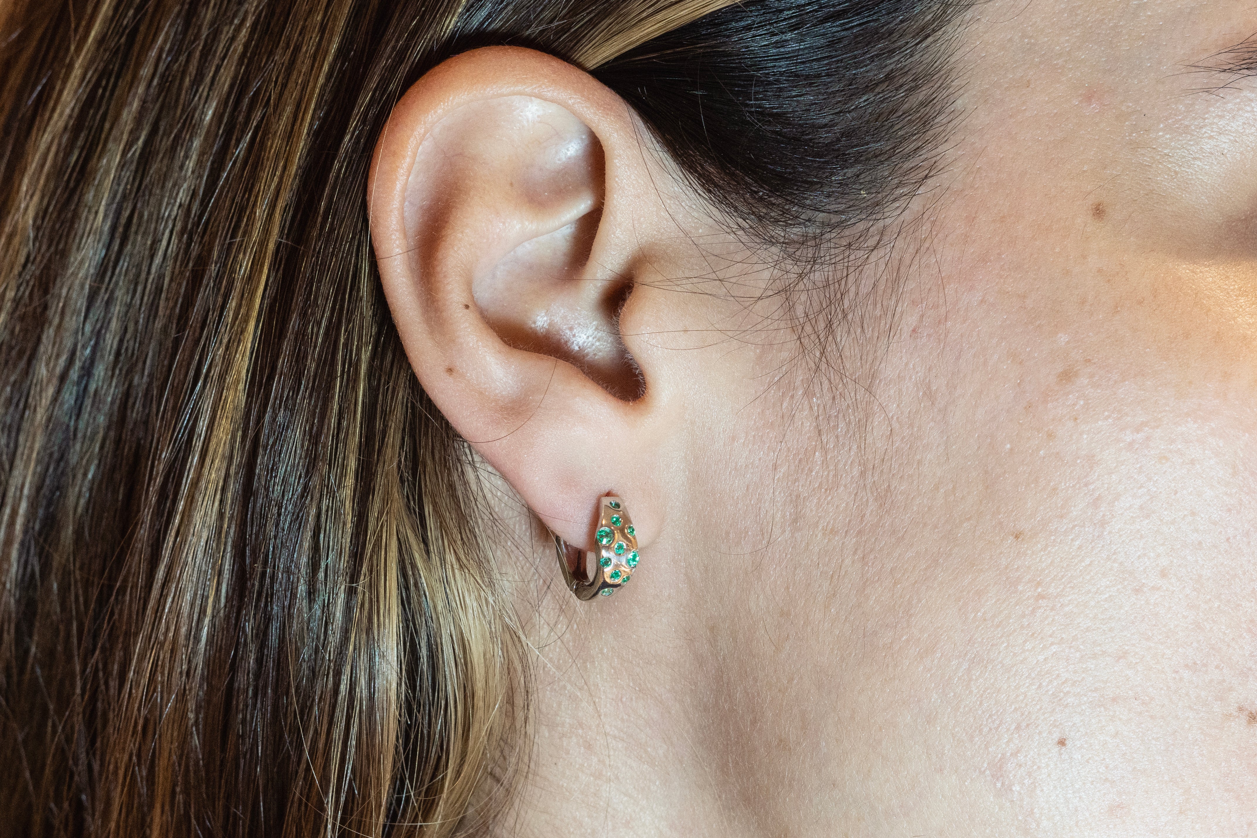 Aretes en plata rodinada ley 925 con esmeralda colombiana. Ancho aprox: 5.5mm