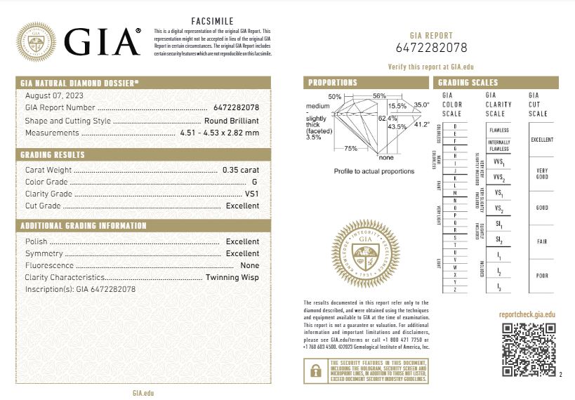 Pieza únicaAnillo Solitario en Oro 18k con Diamante de 0.35CT Color: G. Claridad: VS1 con certificado GIA. Si necesitas un diamante con otras especificaciones contáctanos vía whatsapp