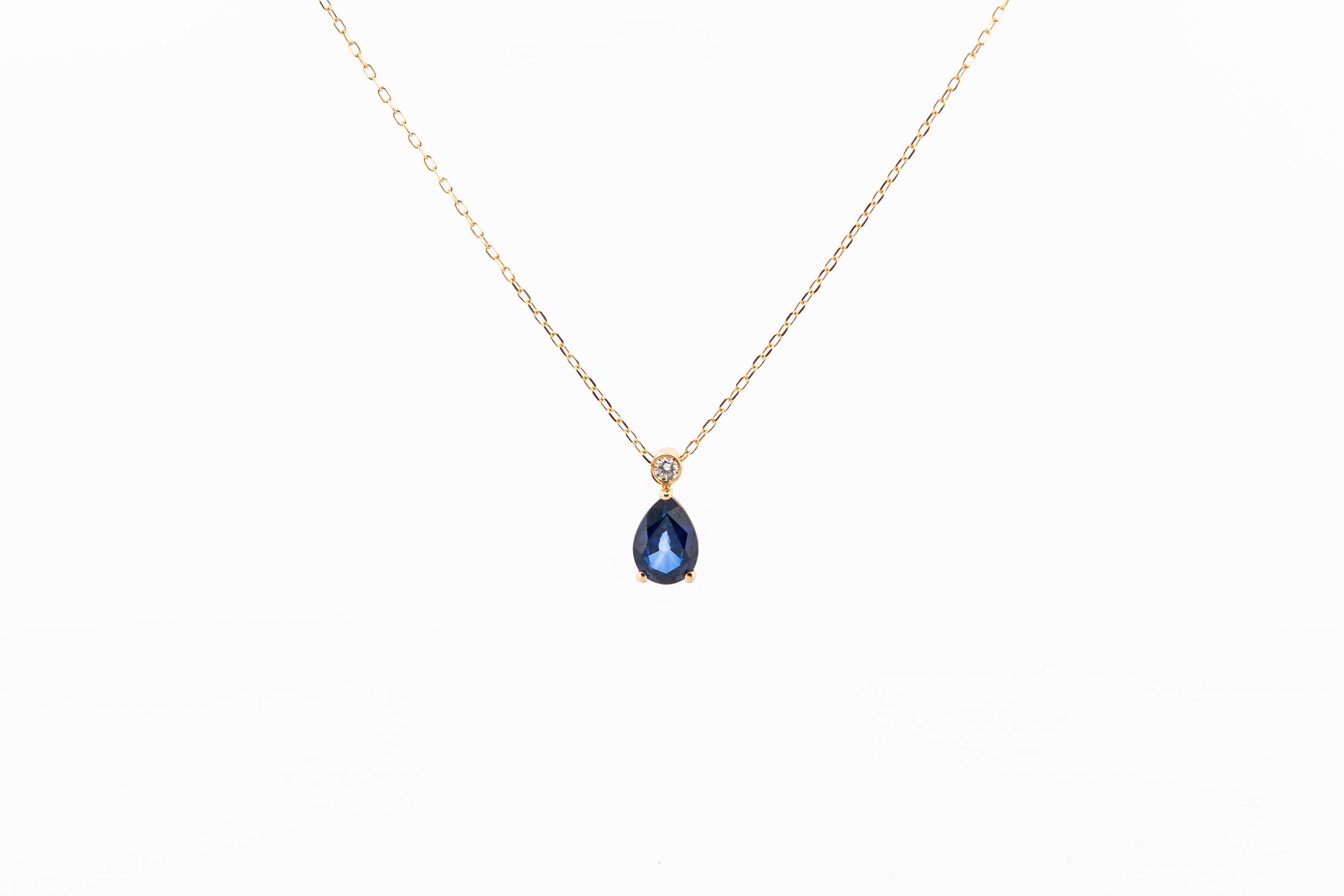 Gargantilla en Oro de 18k, zafiro gota y diamantes.