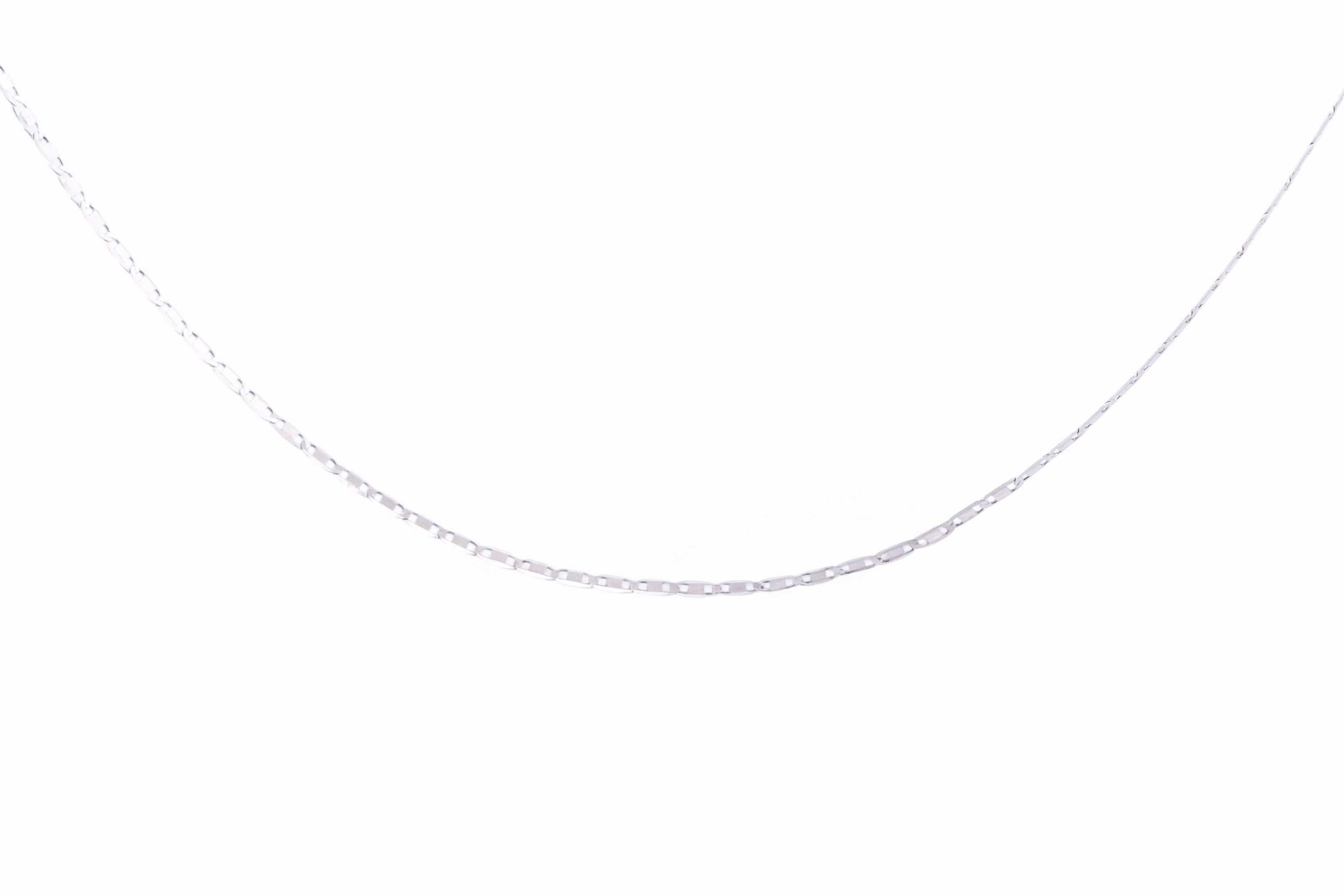 Cadena tejido espejo oro blanco de 1.5mm de ancho en oro 18k ley 750.Largo total: 45cm o 40cm