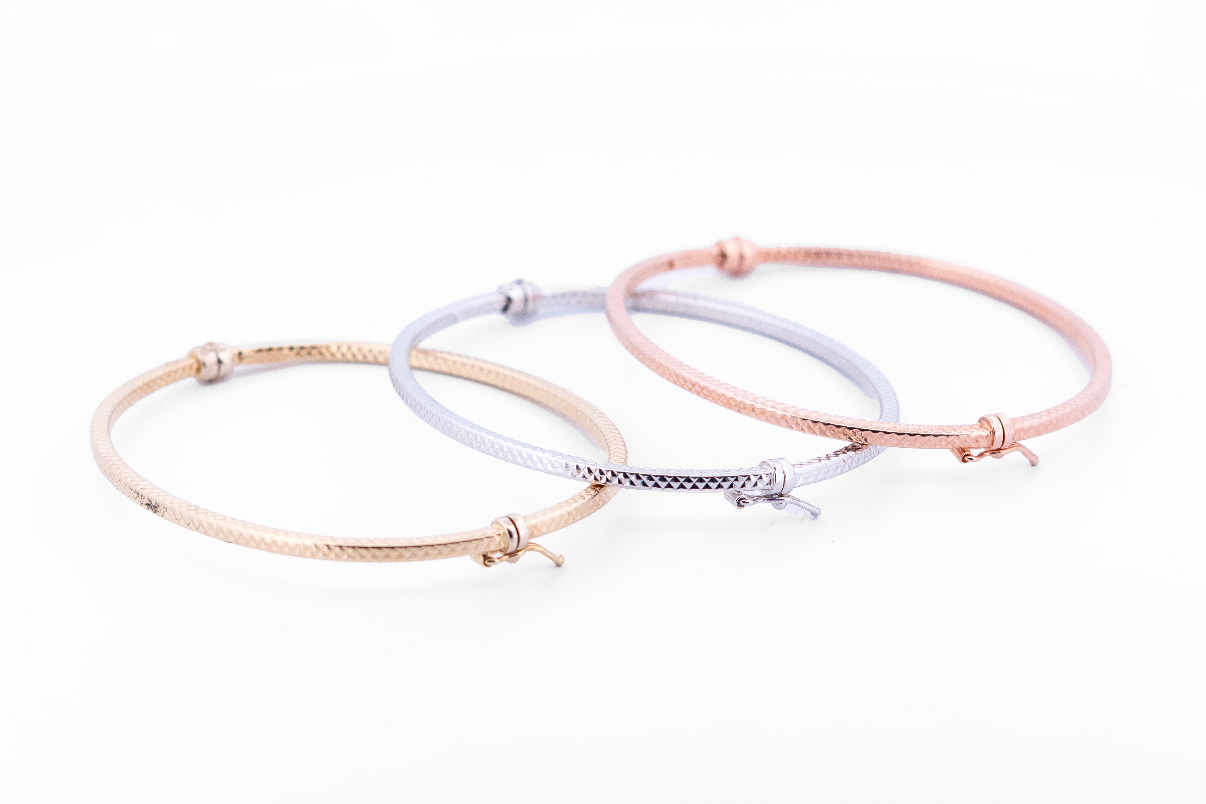 Set de 3 aros de 2.3mm de ancho en oro 18k ley 750.Medida: 17cm