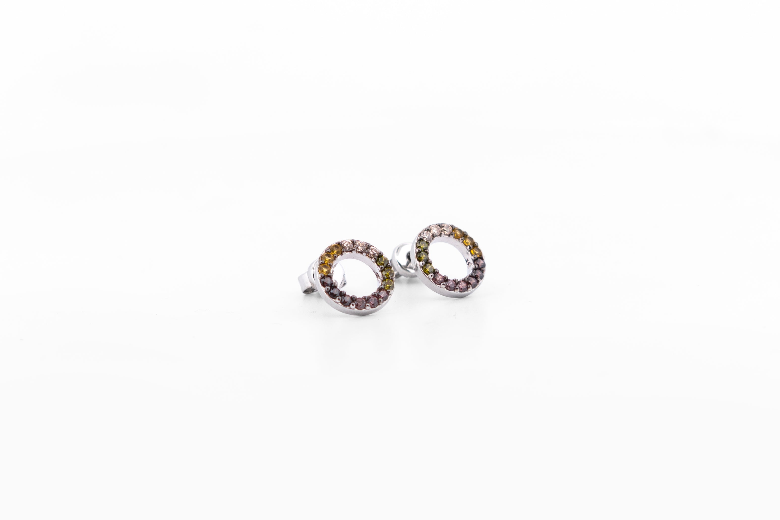 Aretes en plata rodinada ley 925 con circones. Diámetro aproximado: 10mm